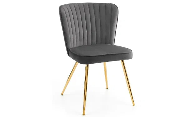 Offering graceful and modern luxe design, the Cannes chair would make a beautiful statement in your home. Smooth, high quality velvet combined with a scalloped back design and contrasting gold-coloured legs – this chair provides comfort, as well as class.