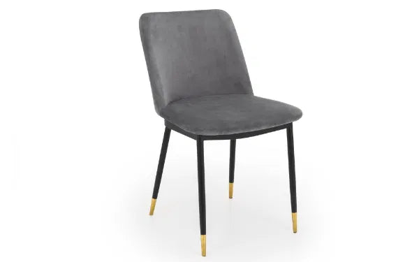The Delaunay Dining Chair offers a simple, modern design finished in a Grey Velvet with black legs and brushed brass tips for an elegant finish. Perfect for adding a touch of glamour to your living room or kitchen space, this elegant chair will perfectly match a range of dining tables.