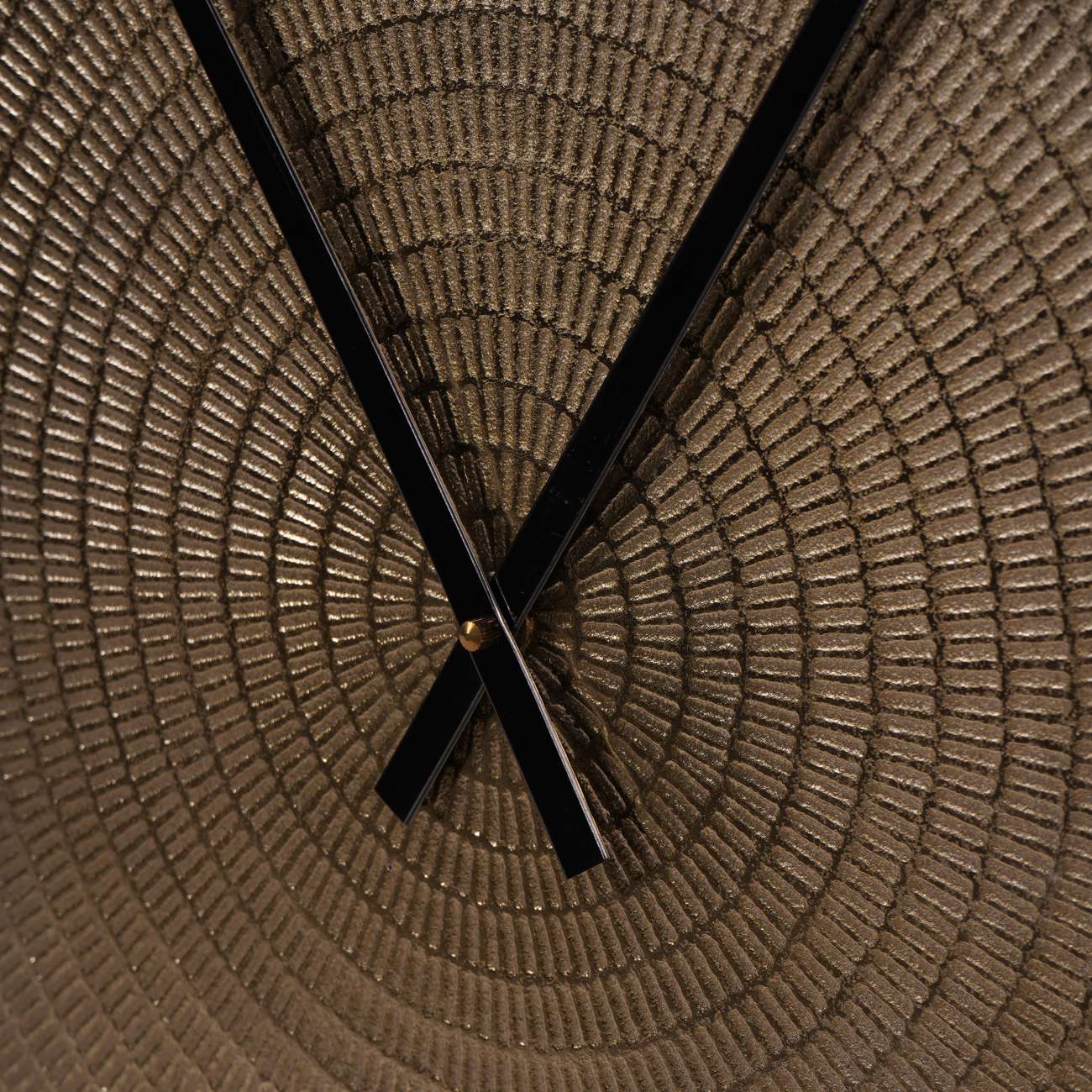 Transform your space with the exquisite Textured Champagne Gold Wall Clock, a piece that blends functionality with artistic flair. Crafted in a stunning champagne shade, this wall clock exudes a sleek, modern elegance, perfect for any contemporary setting. What truly sets this clock apart is its unique texture. This distinctive feature interacts with light, creating a captivating interplay of tones that shift and shimmer as the lighting changes. Requires AA1 Battery (Battery not included). 73 x 1 x 73 ( WxDxH cm) Please note that this clock produces a gentle ticking sound, adding to its nostalgic charm.