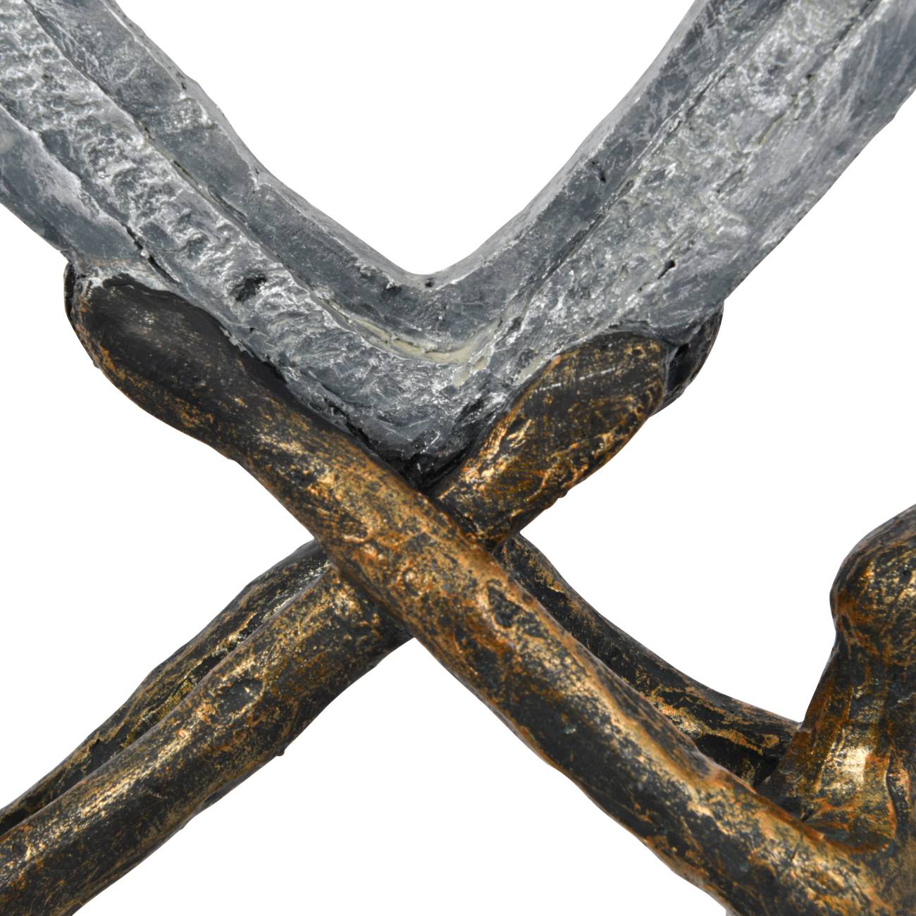 Love can only happen when two people fall for one another and then work together to nurture it. This is represented beautifully here by a dark bronze sculpture made of durable polyresin depicting two figures holding a heart aloft – suggesting the balance required to make relationships work.